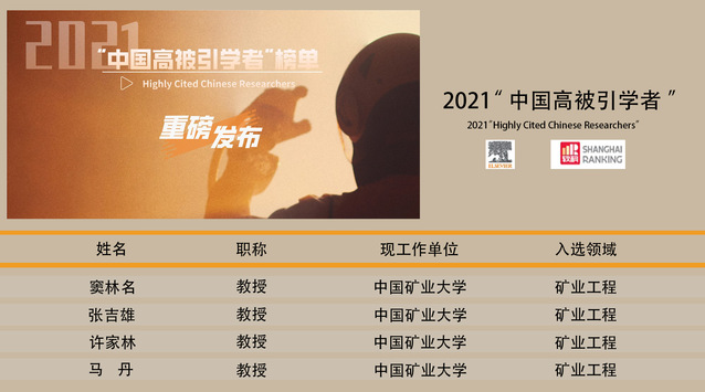 共有24位学者入围。矿业工程学科2021“中国高被引学者”全国共有23位学者入围,果冻传媒