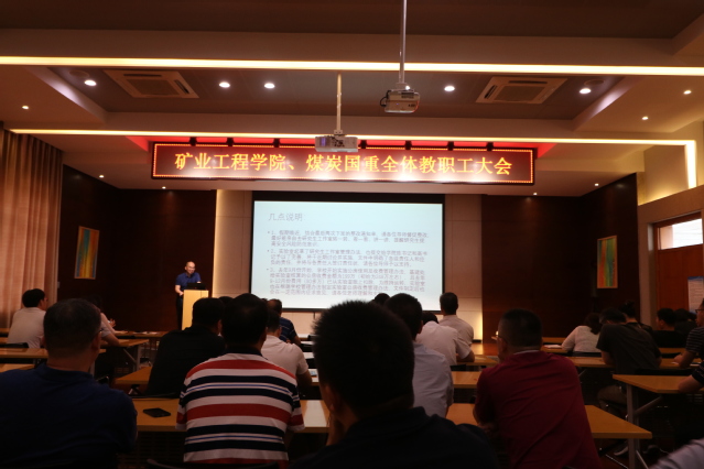 、煤炭国重在院学术报告厅召开了全体教职工大会,在校班子成员以及教职工100多人与会。会议由张吉雄院长主持。