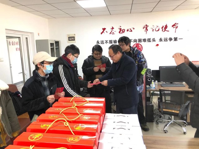 给各位留校学生送上了新春红包和慰问物资。