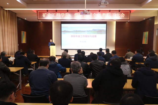 工作主题是“提升与发展”,要进一步凝练学科建设方向,强本拓新,以“需求+质量”的原则引进师资,并向大团队、新方向引进师资倾斜,扎实做好青年教师培养工作,做到人人入团队、人人有方向,通过强化基础研究和实质性院企合作开展科技创新服务,持续推进“五金”工程强化人才培养,依托111引智基地建设进一步加大国际合作交流力度,打造精细化管理服务模式,提升办公效率和教职工工作幸福感。最后他强调,矿业属大家、发展靠大家,面对“碳中和”“碳达峰”新形势,我们要坚定矿业自信,积极主动作为,以饱满的激情、昂扬的斗志,朝着建设能源资源特色世界一流大学的奋斗目标不懈努力。