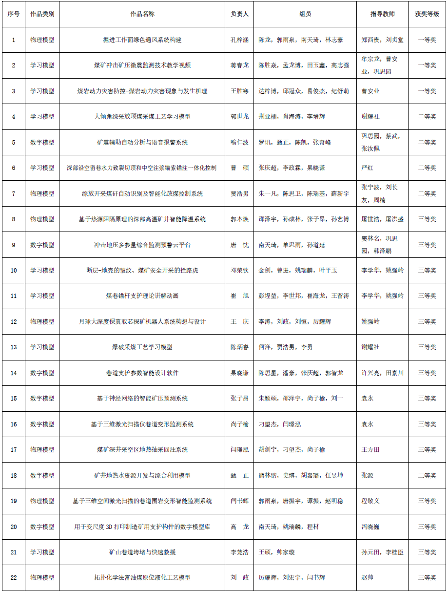 采矿工程专业学生实践作品大赛如期举行,共有47所高校采矿工程专业报名参赛。组委会共收到576件参赛作品,其中物理模型207件、数字模型214件、学习模型155件。经过激烈角逐,共评出一等奖52个、二等奖116个、三等奖259个,最佳组织单位奖5个。果冻传媒