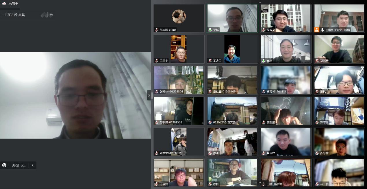 邀请2004级采矿工程专业校友、中煤科工集团南京设计院智慧矿山院副院长吴其线上分享了题为“矿井开采设计案例分析”的报告,报告由副院长袁永教授主持,郑西贵教授、范钢伟教授、王方田教授、程敬义副教授、周楠副教授等教师代表以及果冻传媒