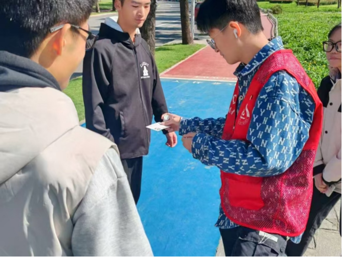 参与活动的学生需要在活动时间内从南门出发,经过鹿苑、音乐台等6个途径点,最后到达植物园,集齐至少4个印章,即可获得相应的志愿时长。为了保证活动的顺利进行,院青协进行了统筹规划,在每个途径点安排同学提供引导。同学们积极参与,按照活动要求完成了印章的收集和步数的捐赠。